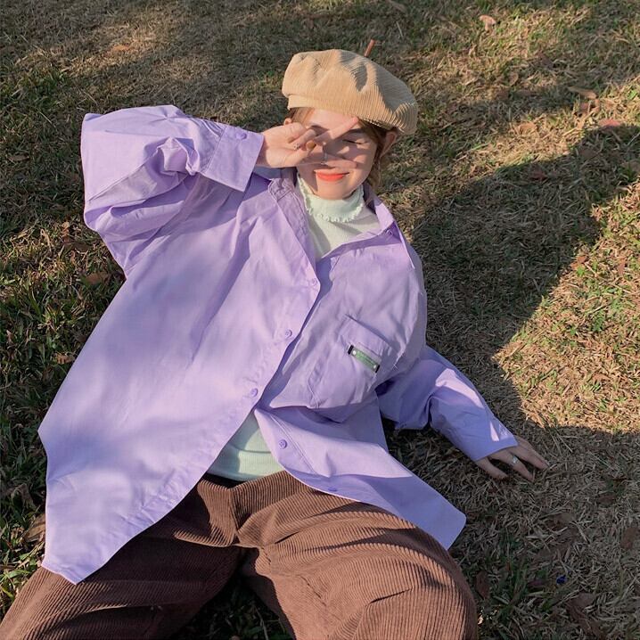 シャツ トップス スプリングカラーカジュアルルーズ ロング 春物 ピュア kumikum27206673155