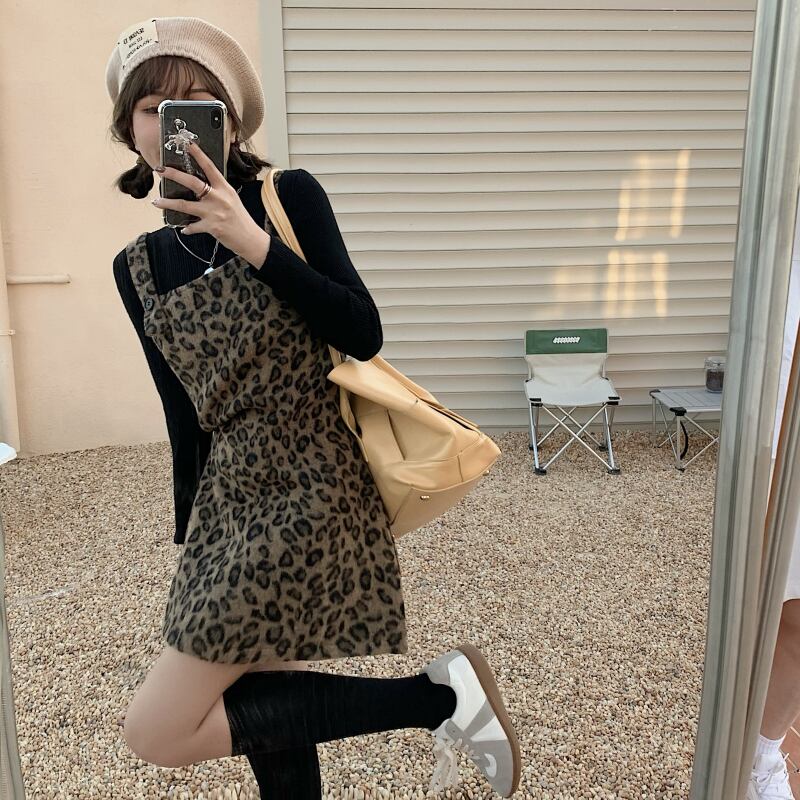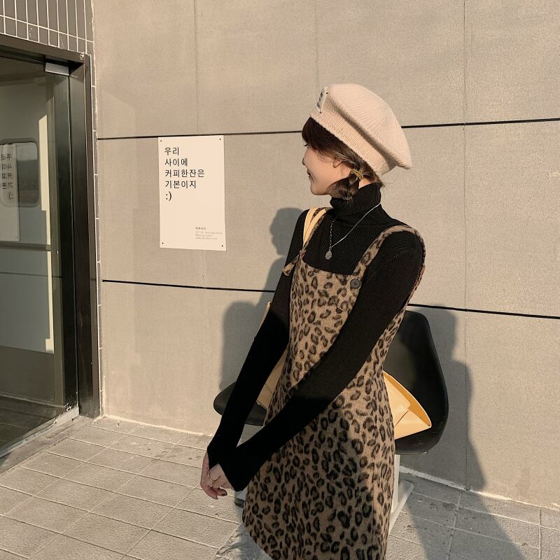 レオパードプリント柄ドレス ウィンターセーター シャツ 冬物 kumikum31754400184