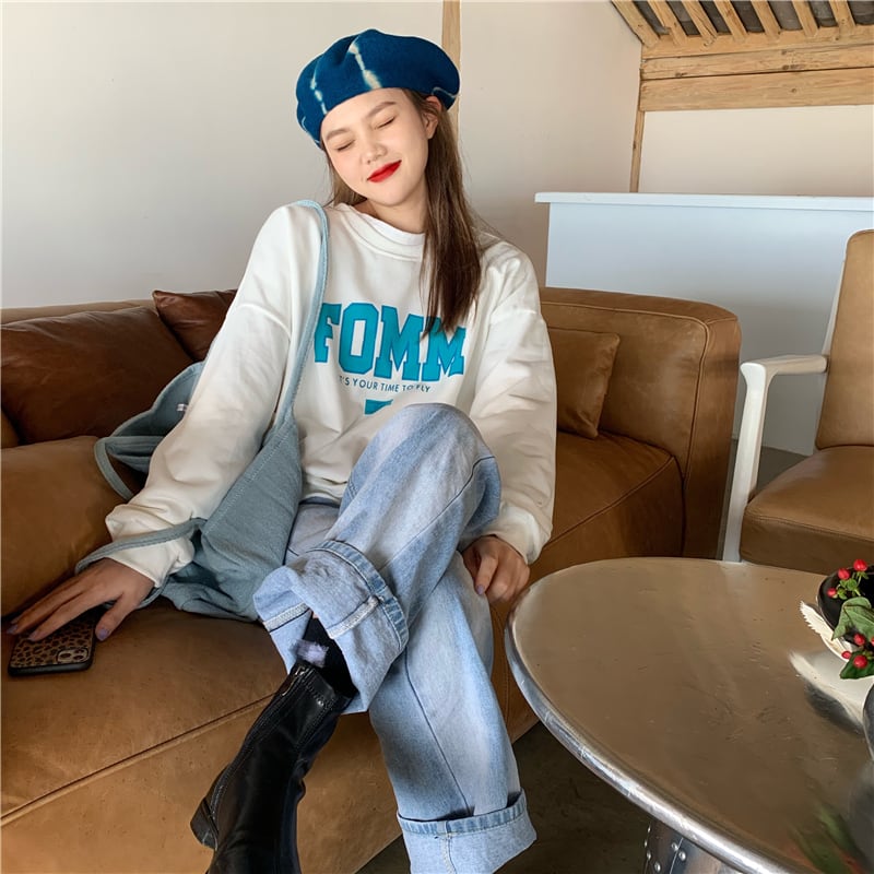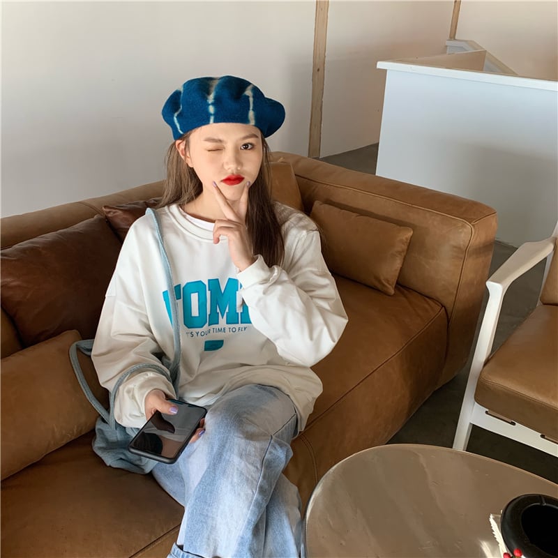 オータムプリントジャケット レディースルーズラウンドネックプルオーバー セーター ロング 秋物 Oネック kumikum88202575817