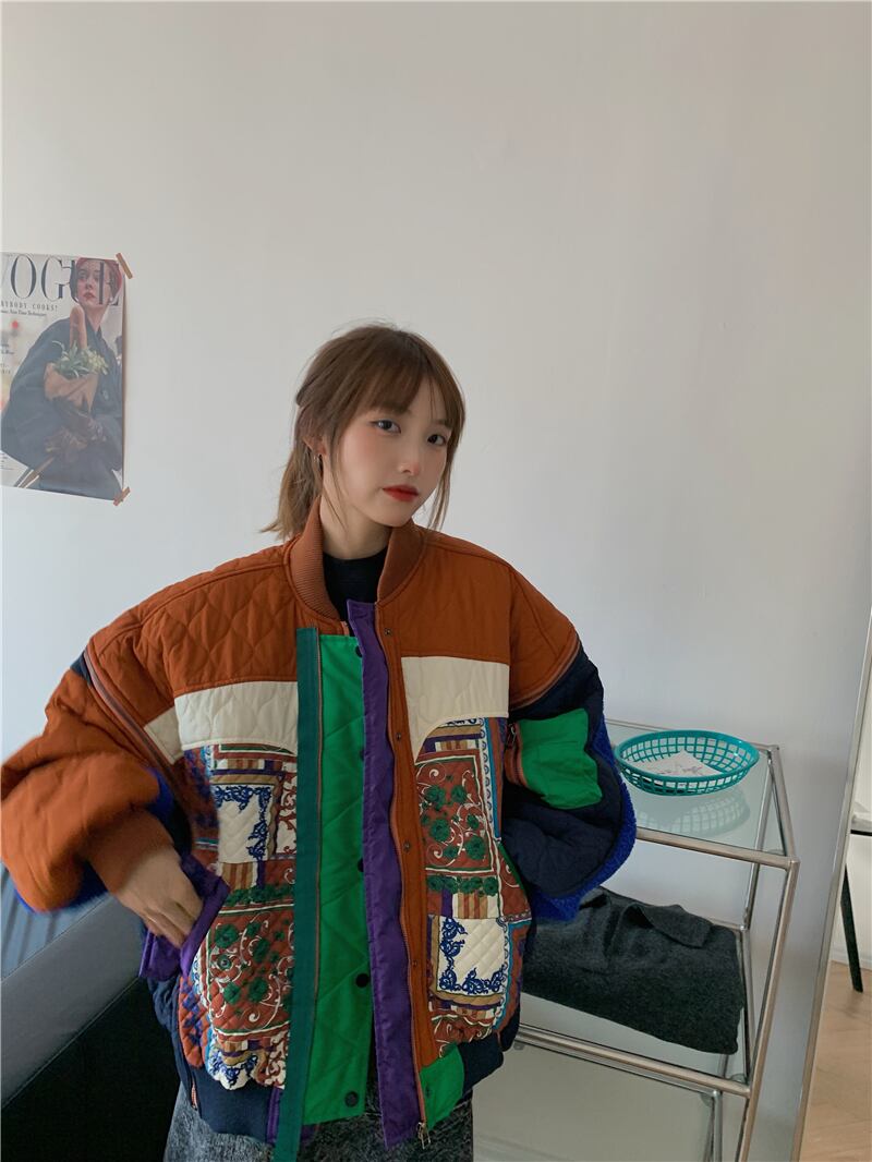 ウィンタージャケット ルーズカラーウールコート ロング コットン 冬物 ステッチ kumikum77476354622