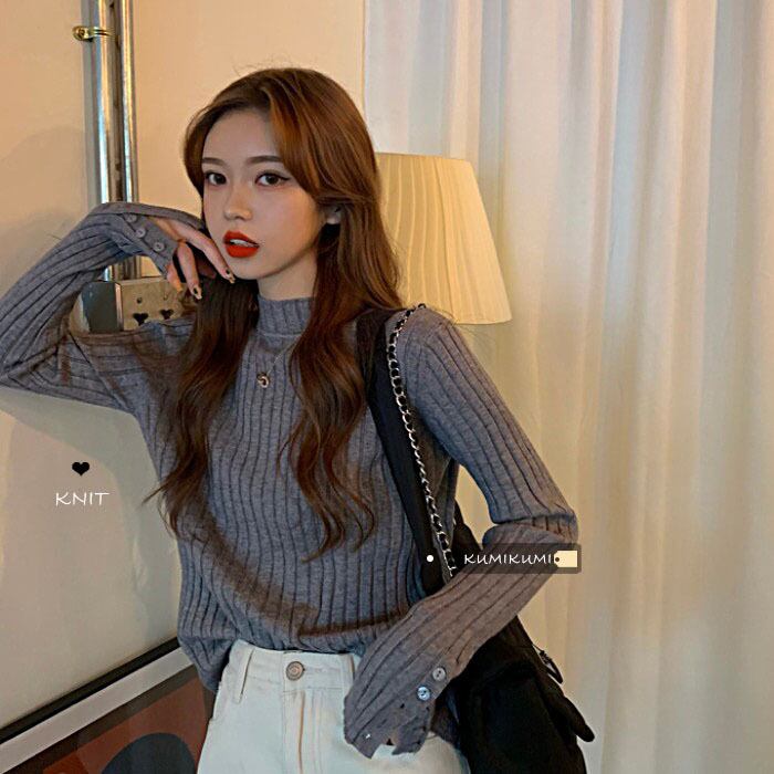 ソリッド カラースリムセーター プルオーバー レディーストップス ウィンター ロング 冬物 ソリッドカラー kumikum89814645520