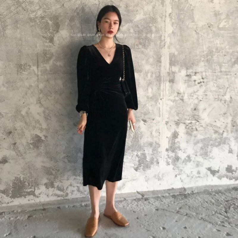 スタイルロングブラックスカート ウィンターウェストドレス 冬物 kumikum30337959608