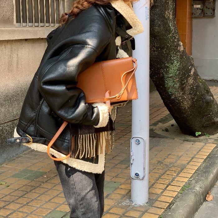 スタイルレザージャケット オータムウィンターウールルーズ ロング 秋物 冬物 kumikum80309983197