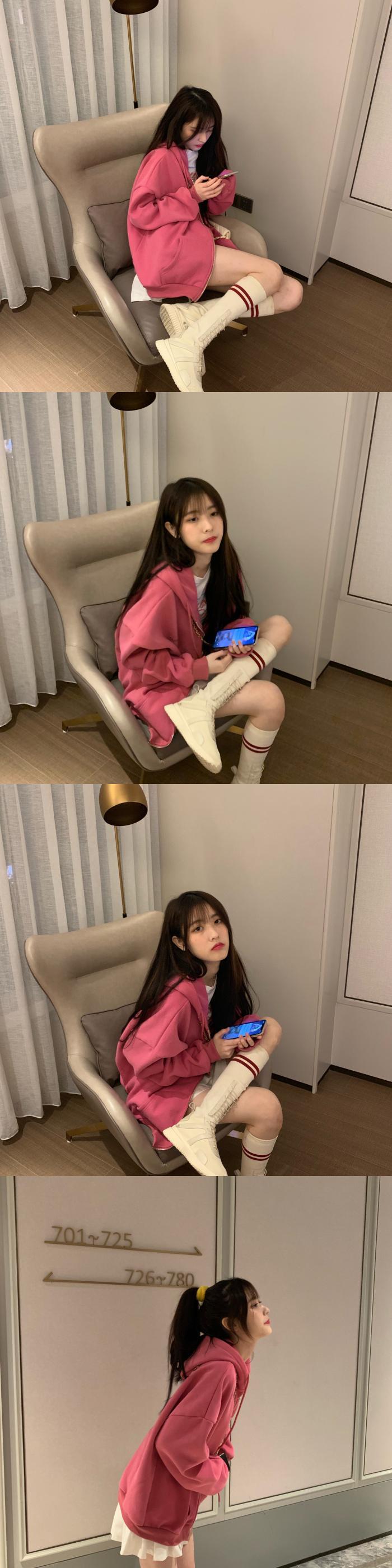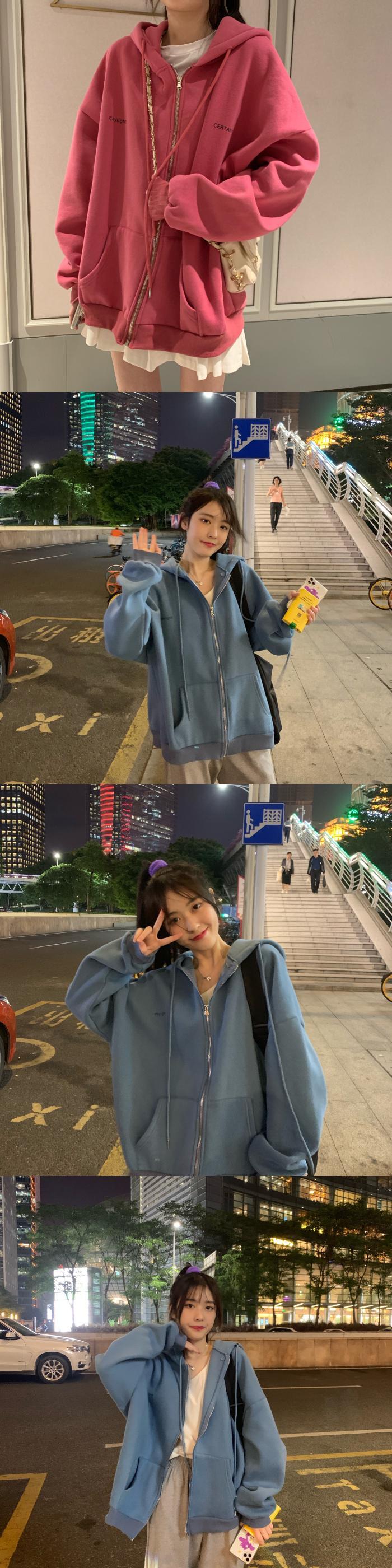 レッドプリントジッパールーズフードセーター レディースオータムウィンターベルベットジャケット ロング 秋物 冬物 kumikum15505835139