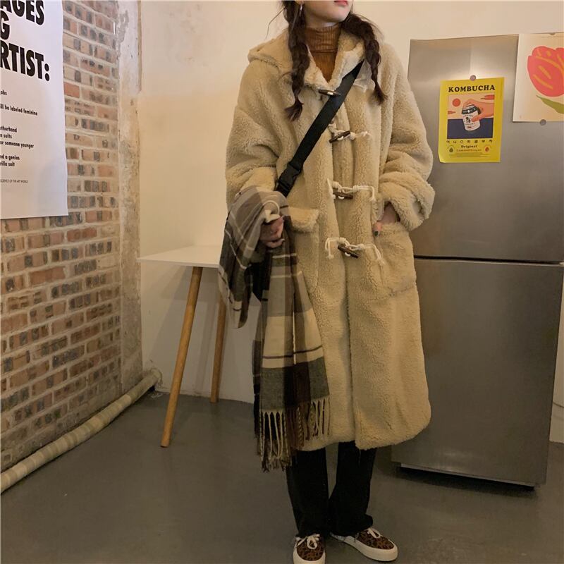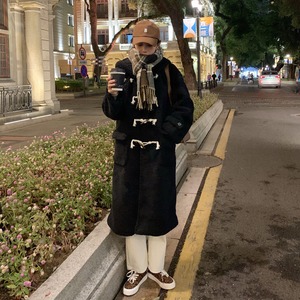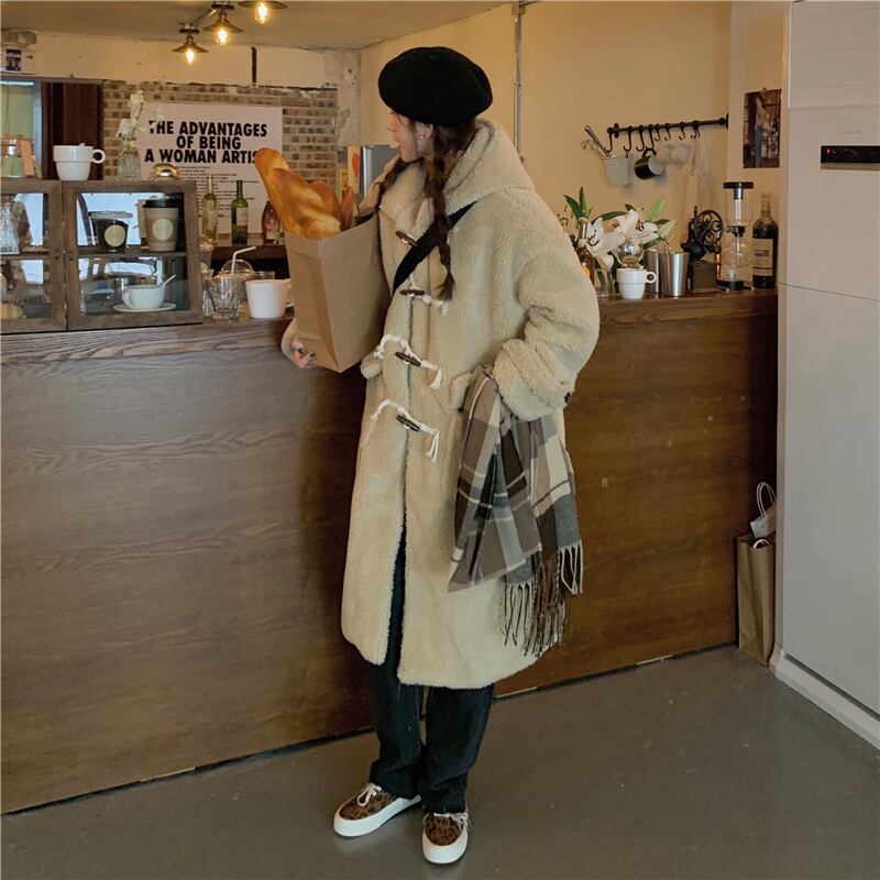 ルーズスタンダードボタンコート レディースウィンターフードウール コットン レトロ 冬物 kumikum67743973243
