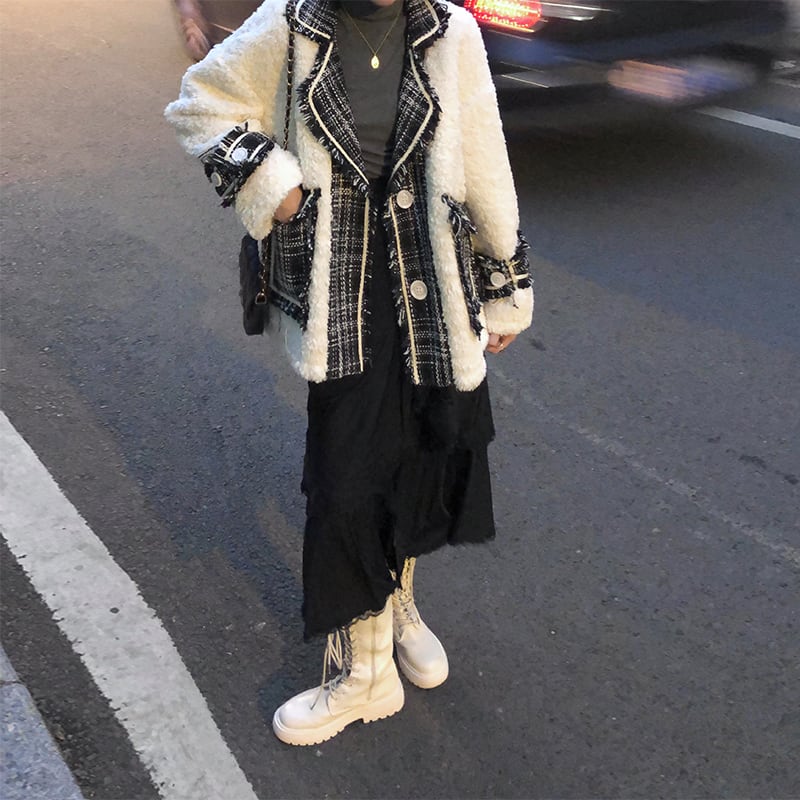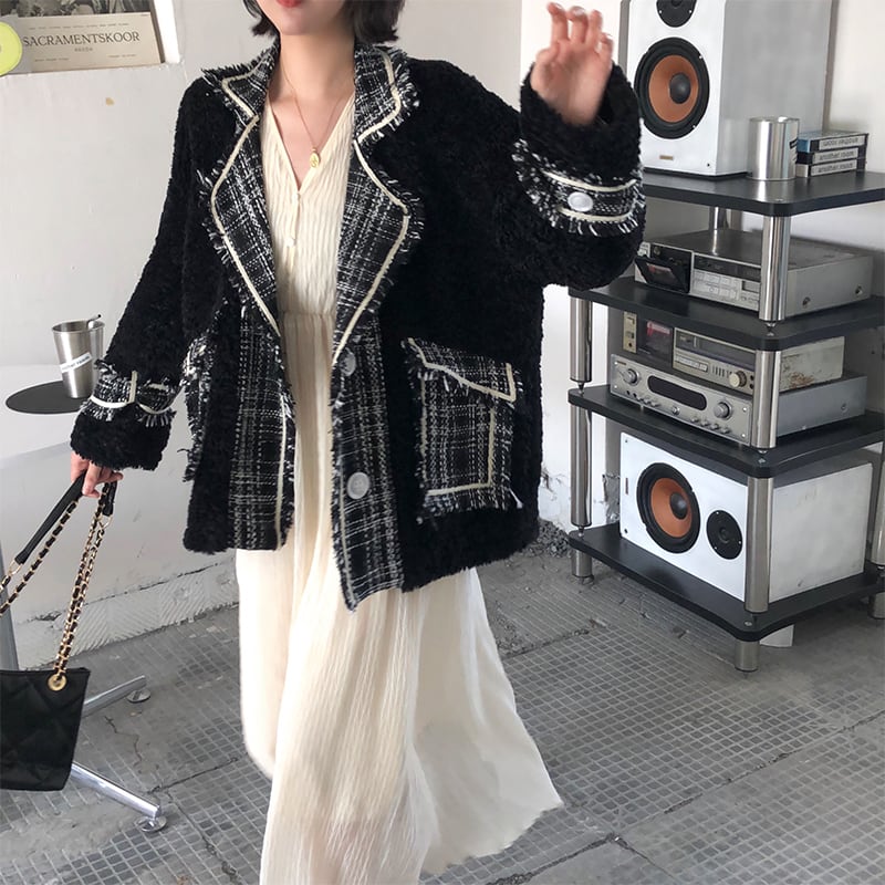 レッドスタンダード格子柄ウールトップス オータムウィンタージャケット レトロ 秋物 冬物 ステッチ kumikum35937665930