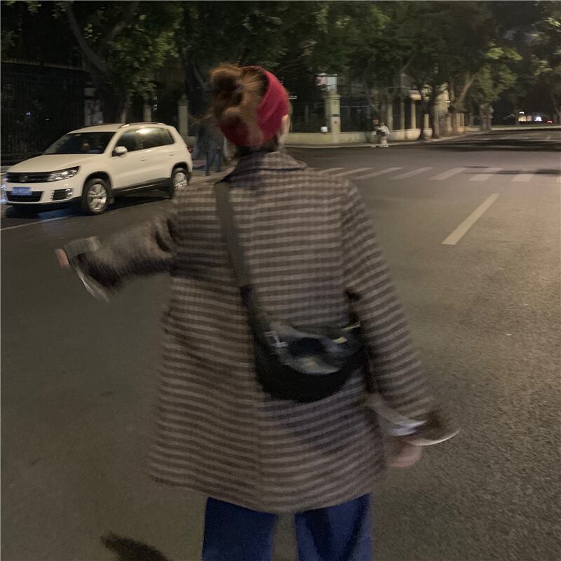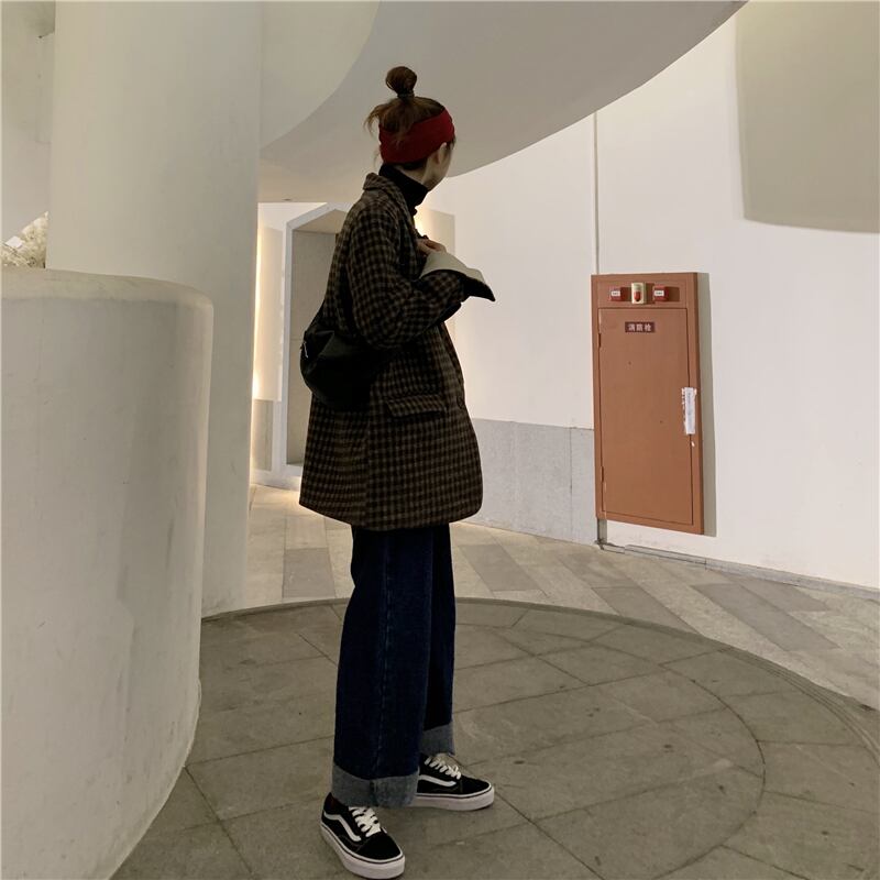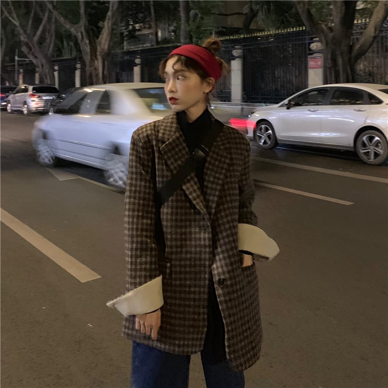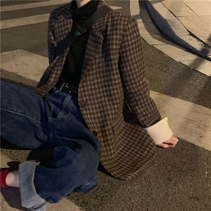 スタンダード格子柄ルーズジャケット オータムウィンター ロング レトロ 秋物 冬物 kumikum47103171977