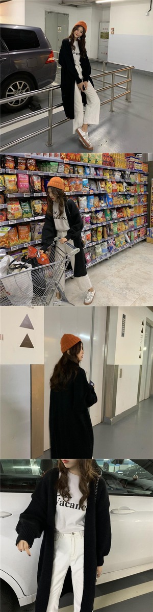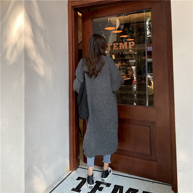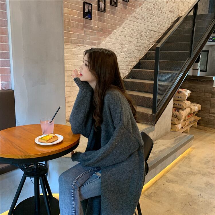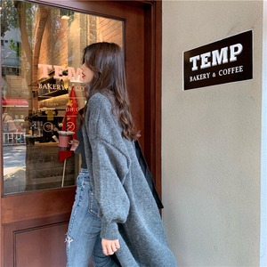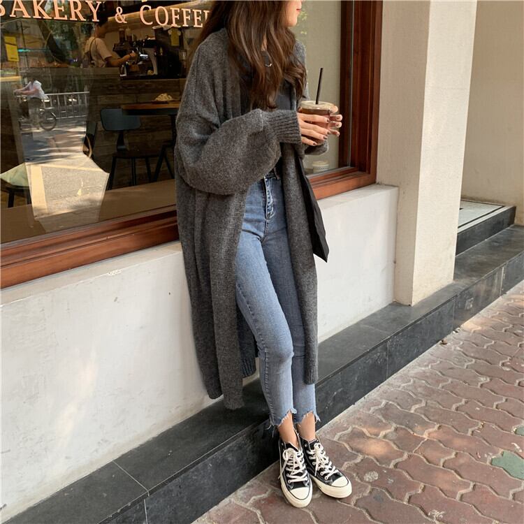ソリッド カラーニットセーター トップス レディーススプリングルーズカーディガンジャケット ロング 春物 ソリッドカラー kumikum68870169448