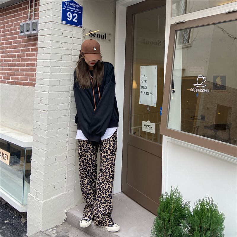 色:黒のセーター758#,ヒョウ柄のズボン