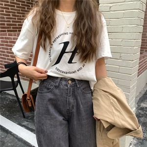 レッドプリントルーズシャツ ラウンドネックトップス ウィンター薄手Tシャツ 冬物 Oネック kumikum36053677429