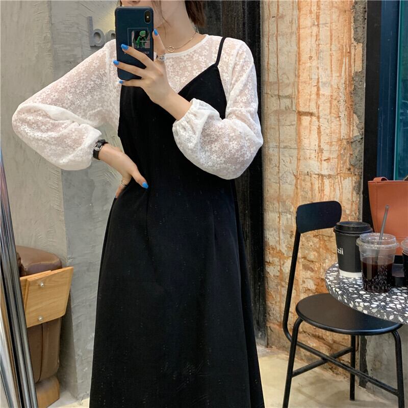 レーススカート ウィンター長袖スリーブAラインドレス ロング 冬物 ステッチ kumikum14742776438