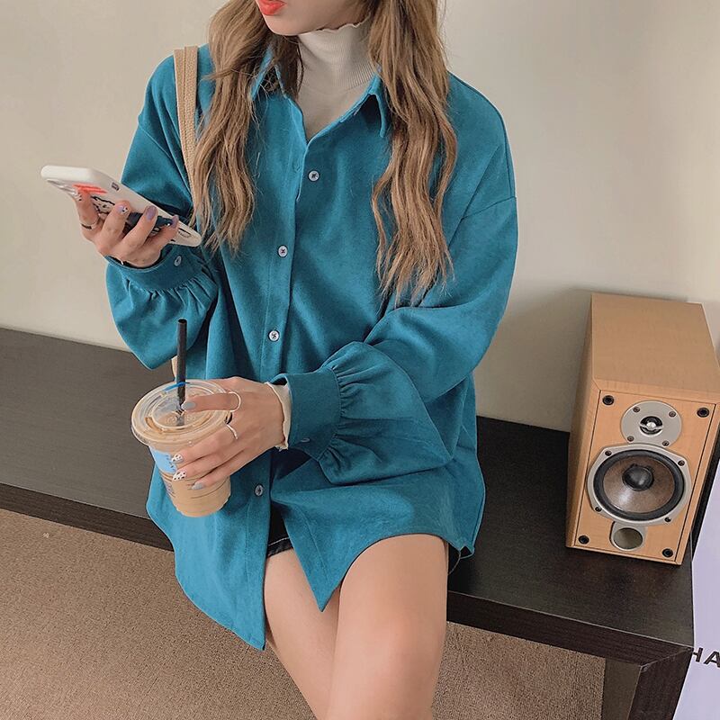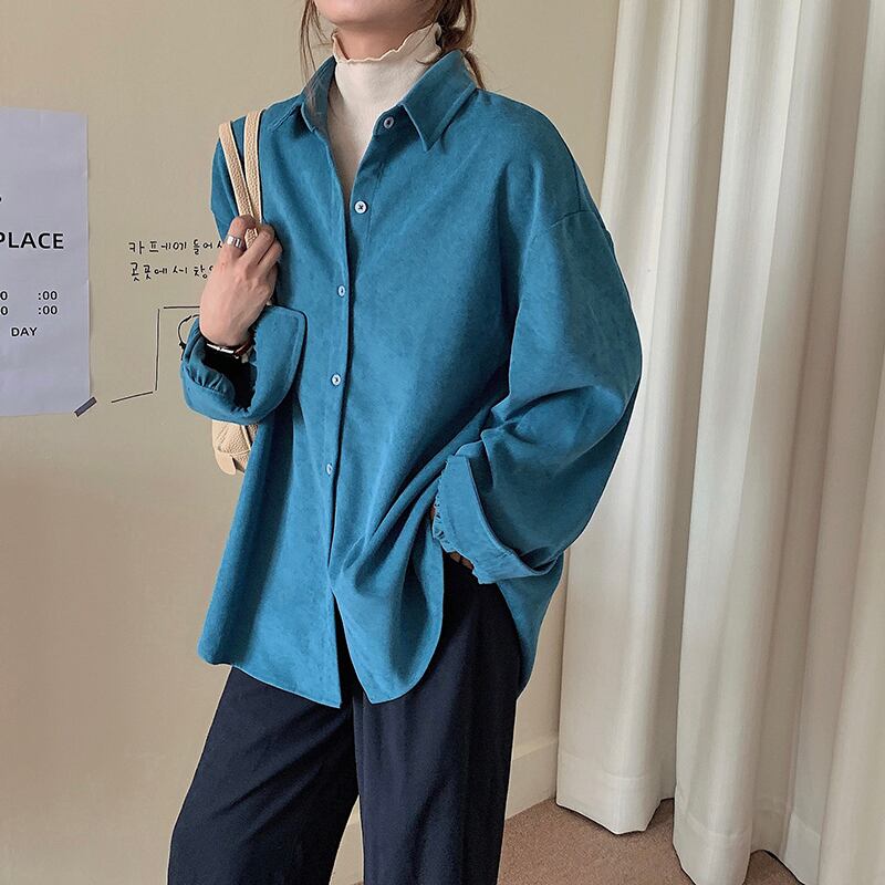 スタンダードコーデュロイシャツ オータムルーズ ロング レトロ 秋物 kumikum32669989802