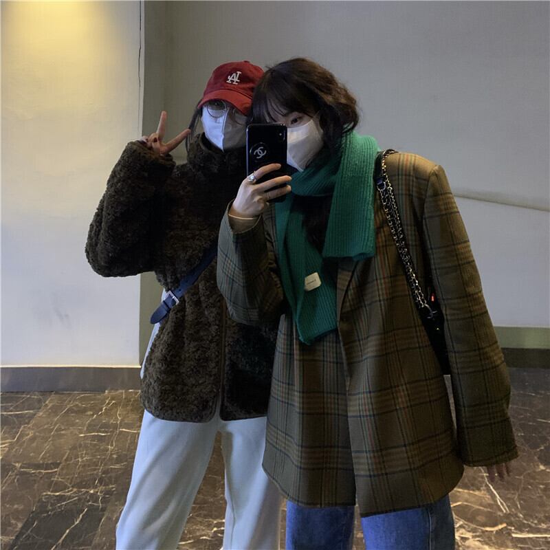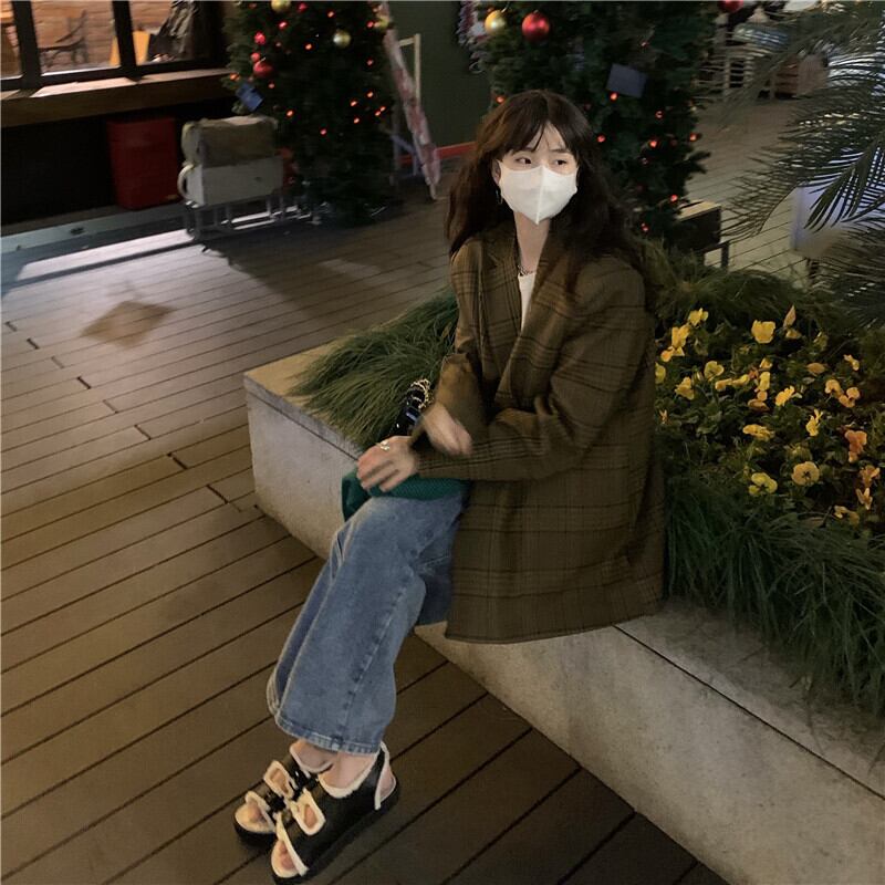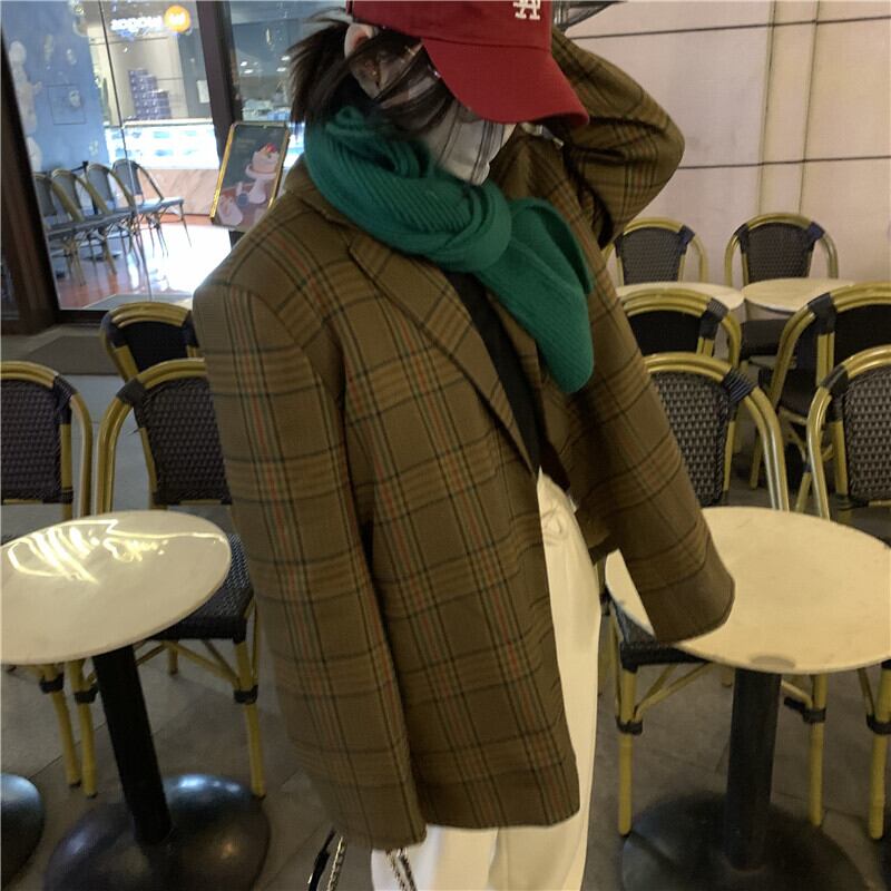 スタンダード格子柄ジャケット レディースウィンタールーズカーディガン レトロ 冬物 kumikum5260520943