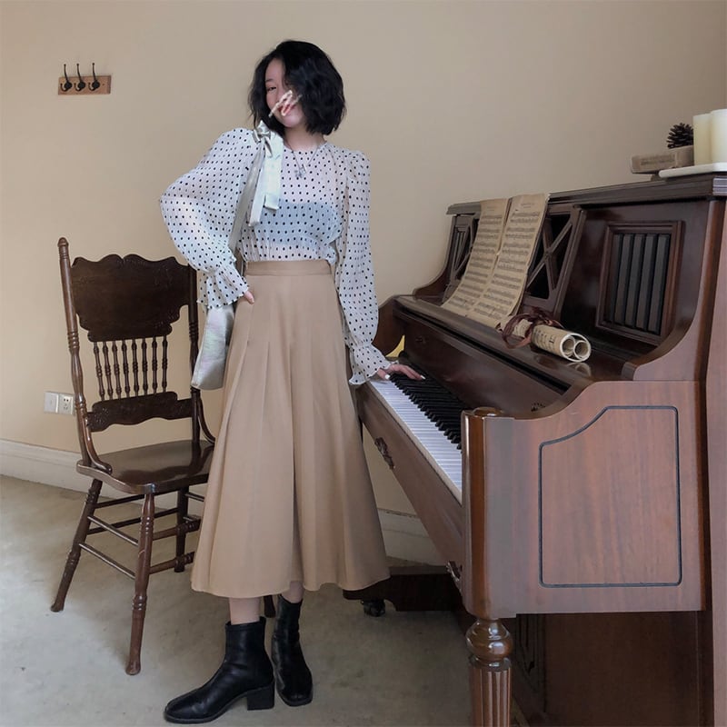 スカート ウィンターソリッド カラーハイウェストウェストプリーツAライン 冬物 ソリッドカラー kumikum66221498274