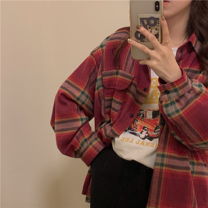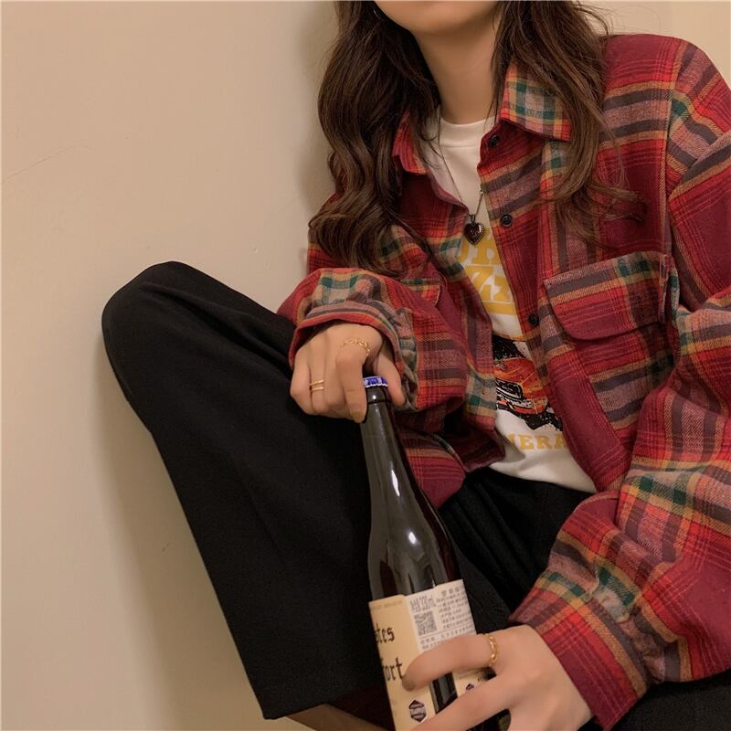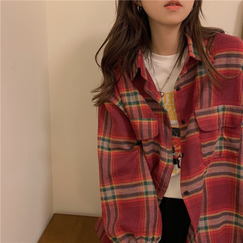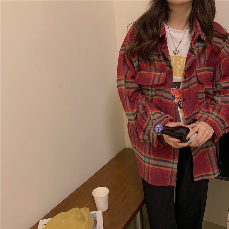 ルーズ格子柄シャツ レディースウィンタージャケット トップス ロング 冬物 kumikum21180208454