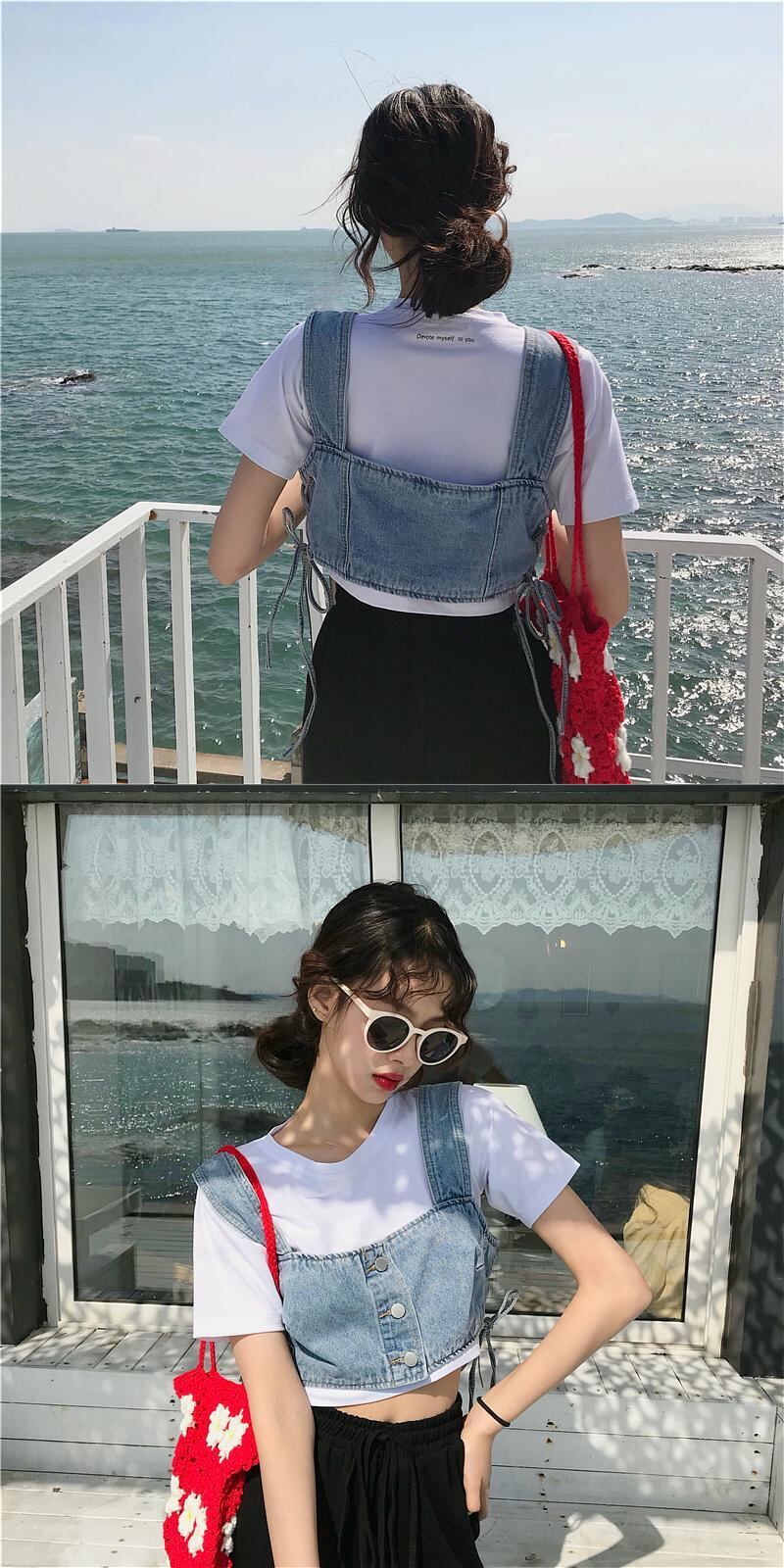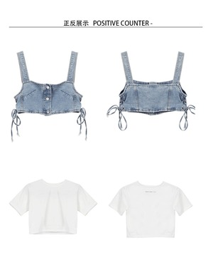 色:Tシャツ,デニムベスト