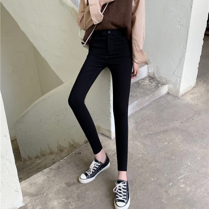 ハイウェストパンツ スプリングブラックジーンズ 春物 kumikum75832483196