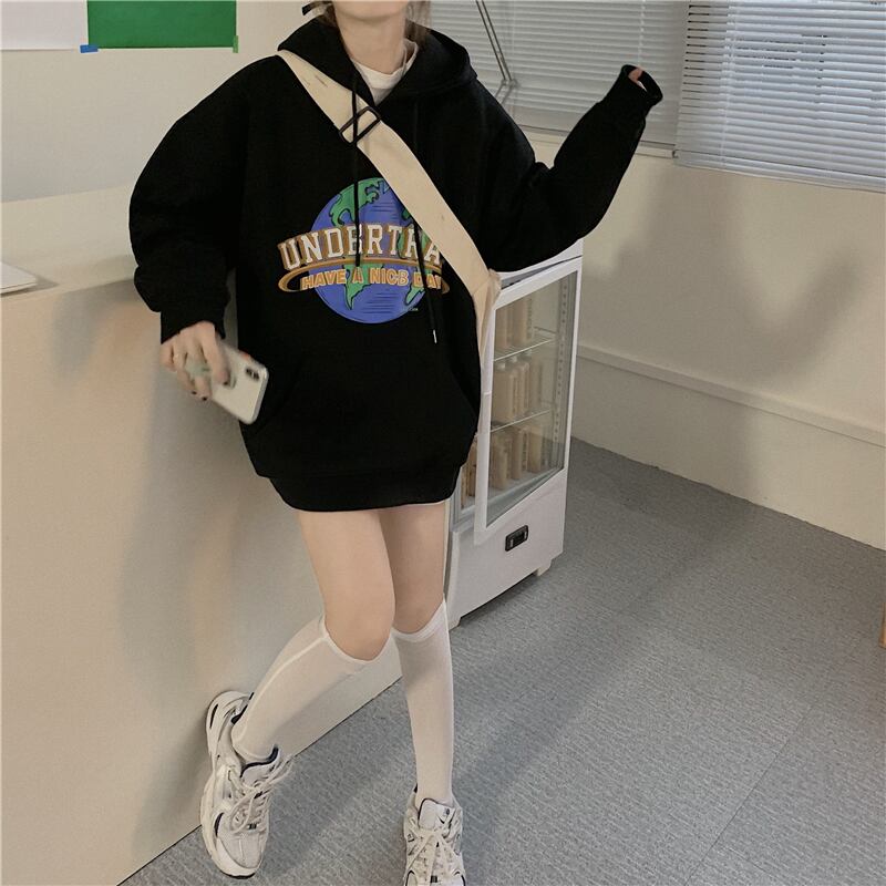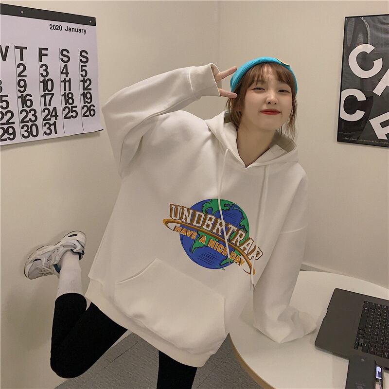 プリントプルオーバー セーター レディースオータムウィンターベルベットルーズフードトップス 秋物 冬物 kumikum84062534569