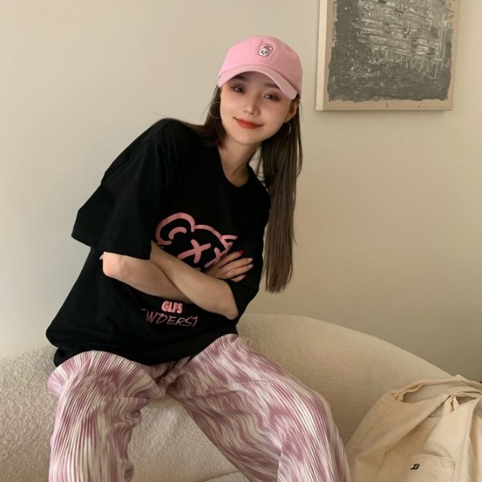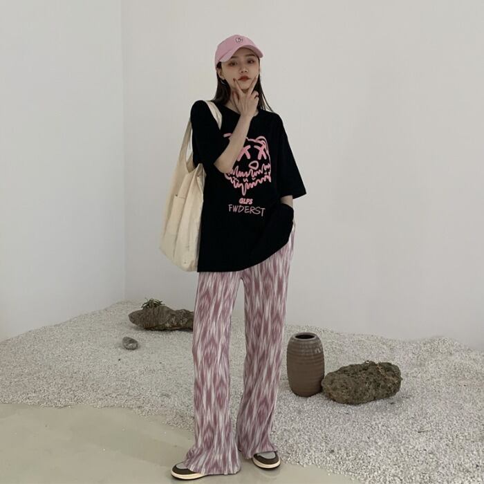 プリント柄ルーズTシャツ サマーカジュアルパンツ 夏物 kumikum82244663538