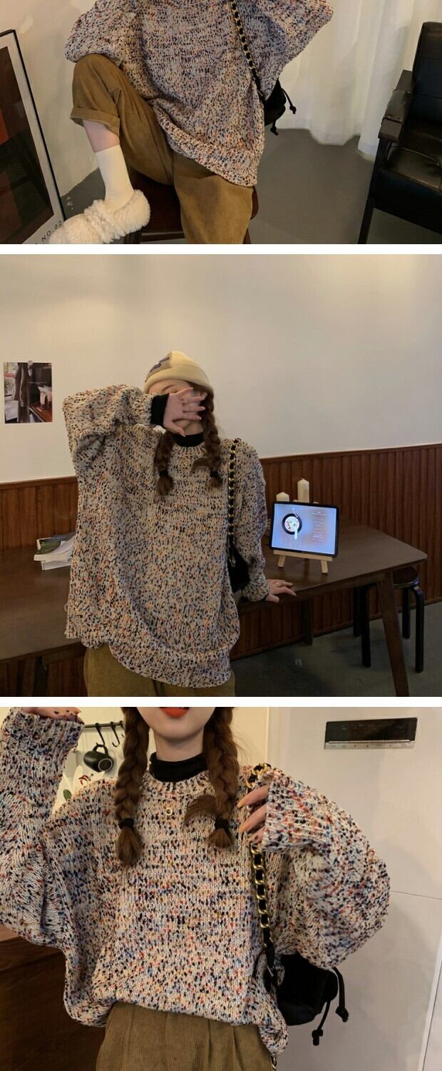 ヴィンテージラウンドネックジャケット セーター レディースウィンタースタイルルーズプルオーバー ロング 冬物 Oネック ビンテージ kumikum14898799838