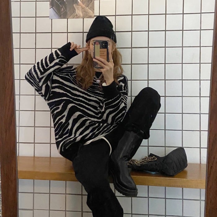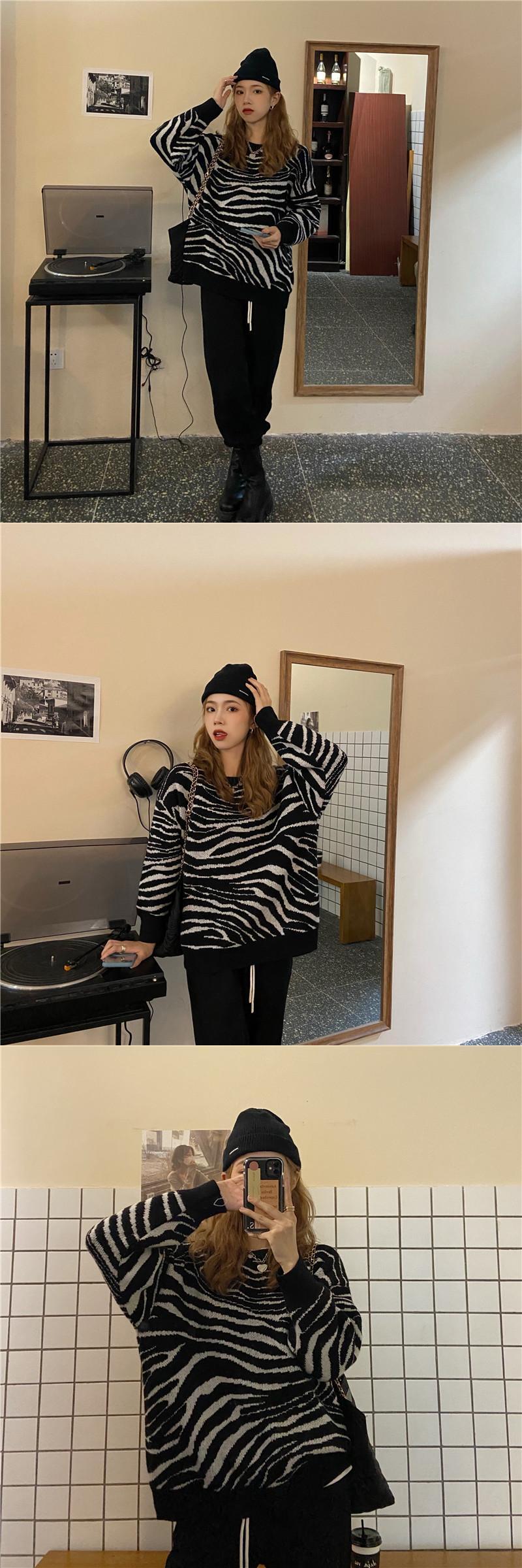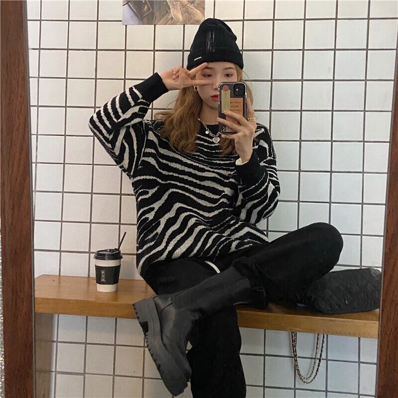 スタイルルーズラウンドネックパターンプルオーバー レディースオータムスタンダードセーター トップス ロング レトロ 秋物 Oネック kumikum23909028909