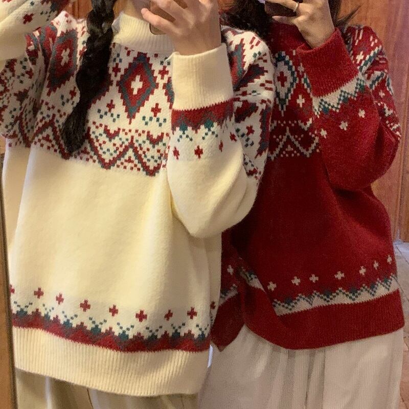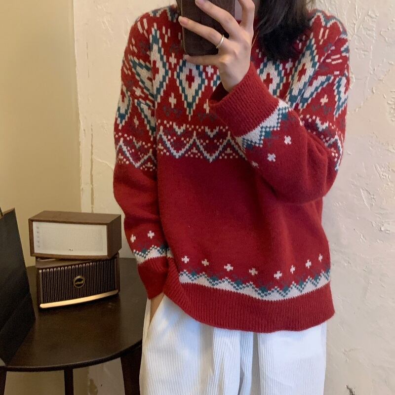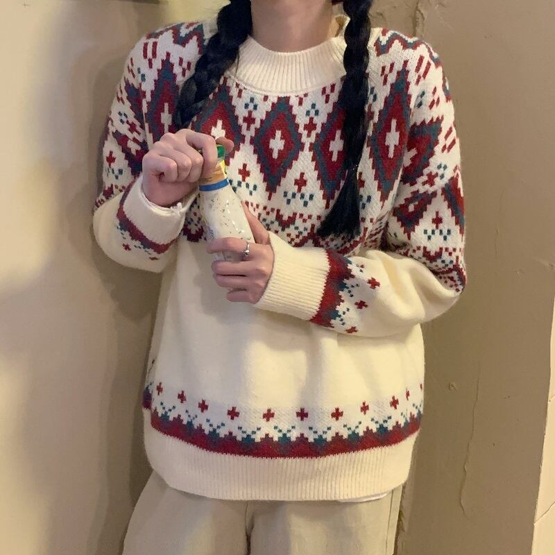 カラーラウンドネックプルオーバー セーター ウィンタールーズトップス ロング 冬物 Oネック kumikum22691492009