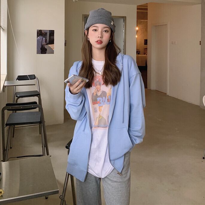 スプリングルーズフードジッパーセーター ジャケット スタイル薄手トップス ロング 春物 kumikum39607909032
