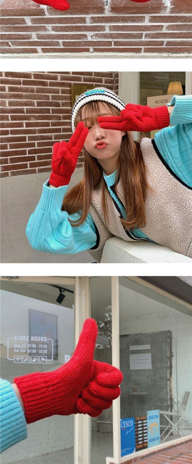 ニットグローブ レディースウィンター レッド 大人ガーリー スウィート キュート カジュアル 冬物 kumikum66096438518