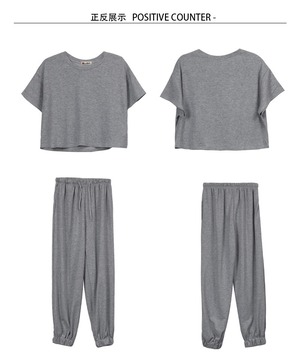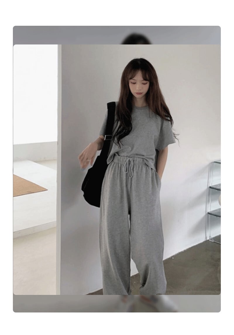 オータムソリッド カラールーズカジュアル半袖スリーブTシャツ トップス パンツ ショート ハーフスリーブ 秋物 ソリッドカラー kumikum14946166808