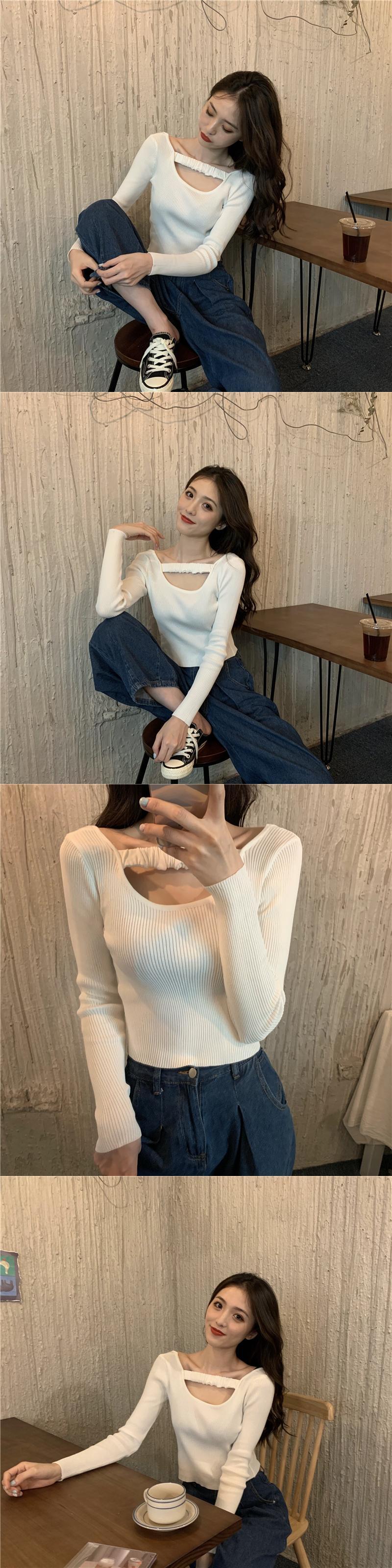 スリムカラーニットセーター トップス レディースオータムスタイルショートロングシャツ 長袖 秋物 kumikum31847066026