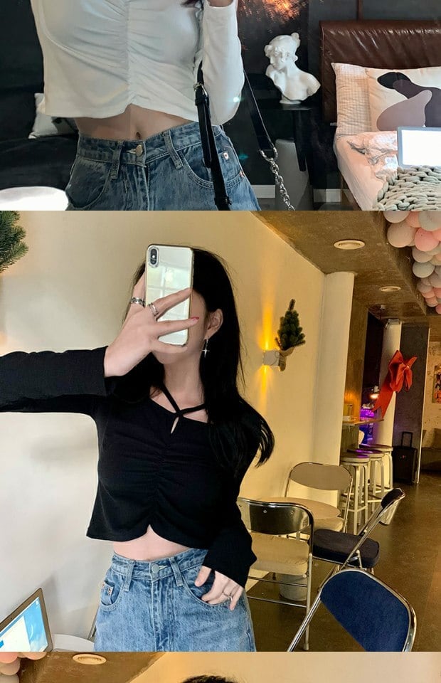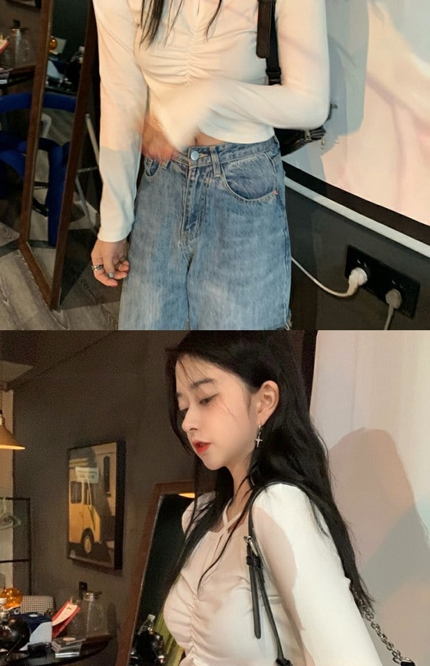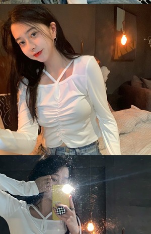 ショートプリーツスリムシャツ トップス スプリング薄手Tシャツ ロング 春物 kumikum14237451082