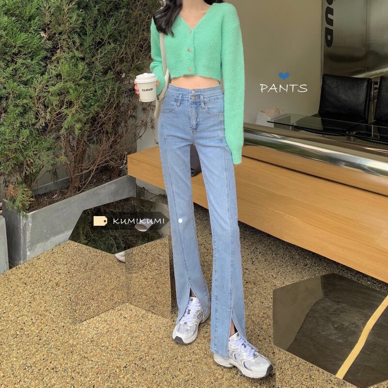 ハイウェストジーンズ 薄手ルーズパンツ スプリング レッド 春物 kumikum26891893293