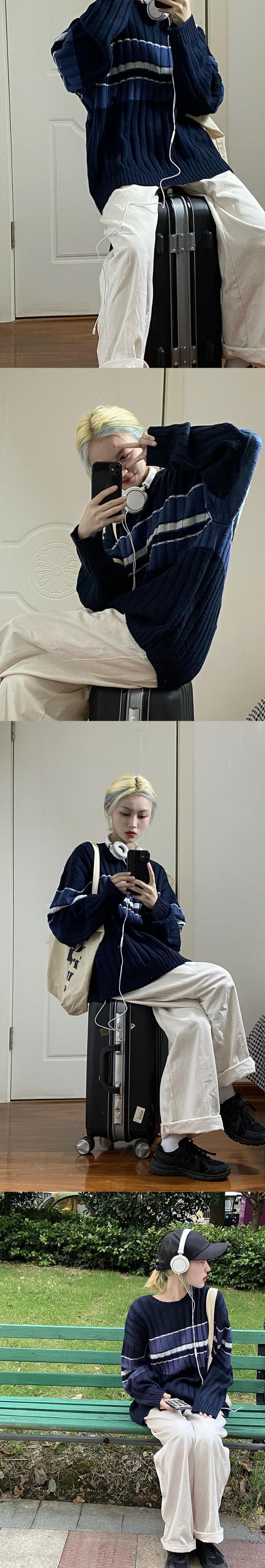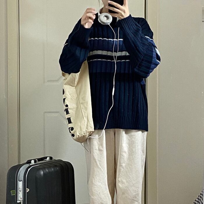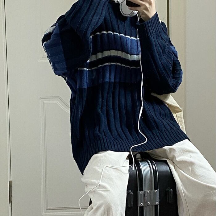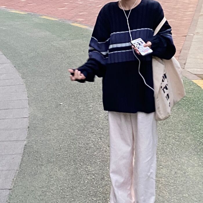 カラールーズスタイルプルオーバー セーター スプリングスタンダードスリムニットラウンドネックトップス ロング レトロ 春物 Oネック kumikum64642869219