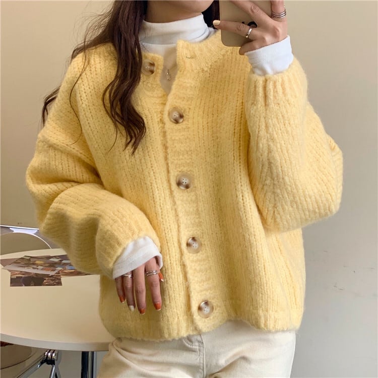 カラーニットセーター トップス オータムルーズカーディガンジャケット ロング 秋物 kumikum9182895158