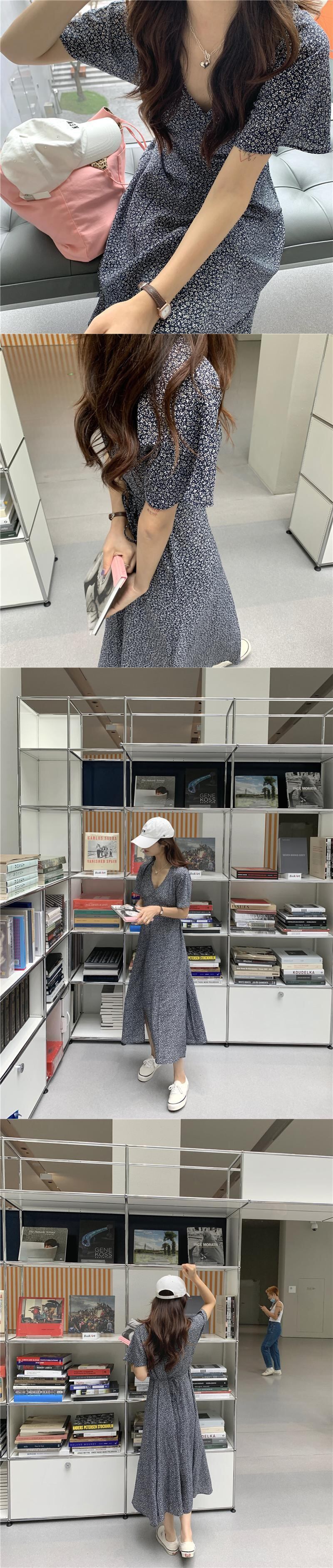 スタンダードフローラルVネックドレス スカート サマーウェストロング レトロ 夏物 花柄 kumikum33034553746