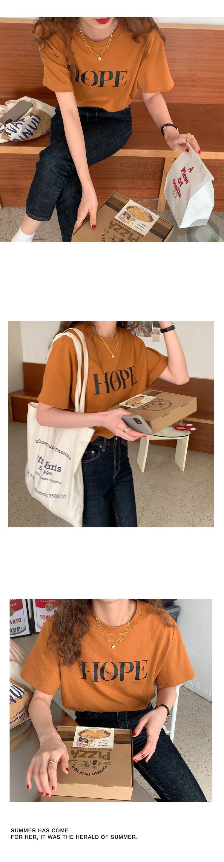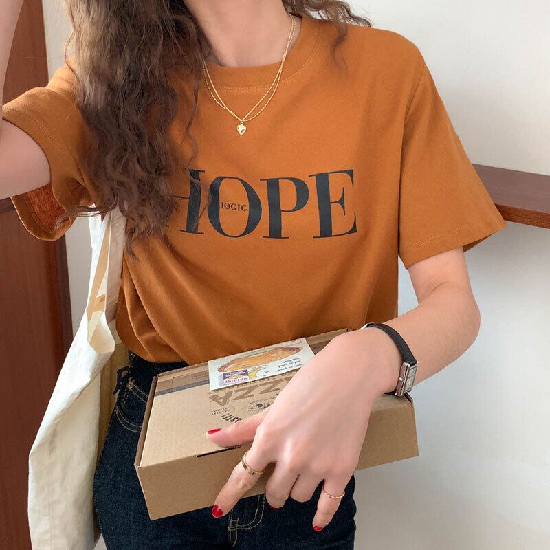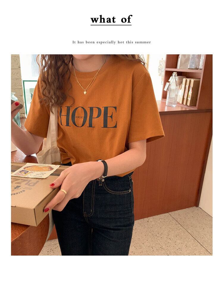 レッドプリントラウンドネックTシャツ シャツ スプリングルーズ 春物 Oネック kumikum94426168249