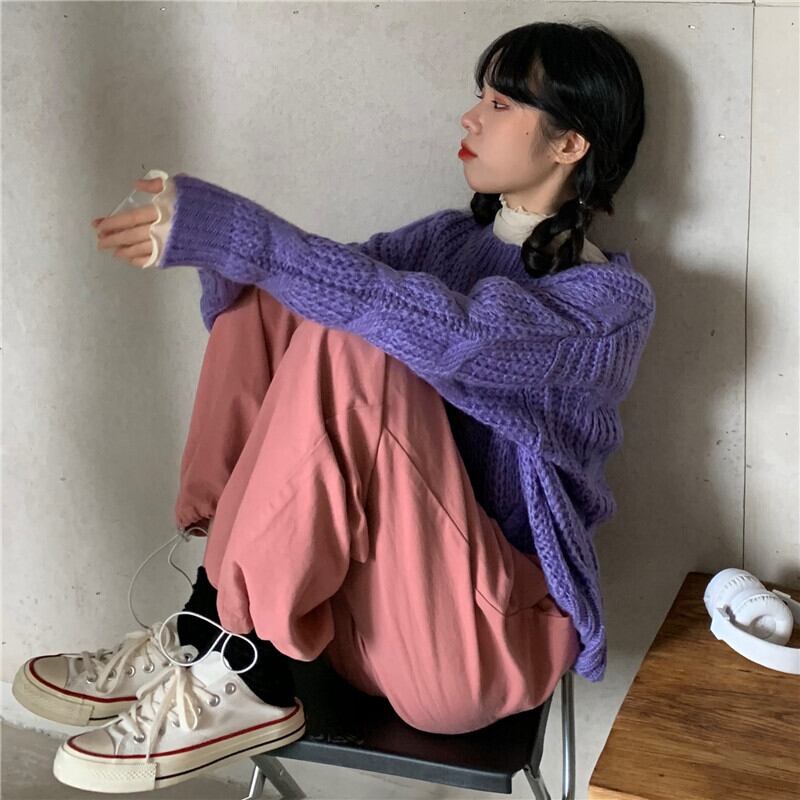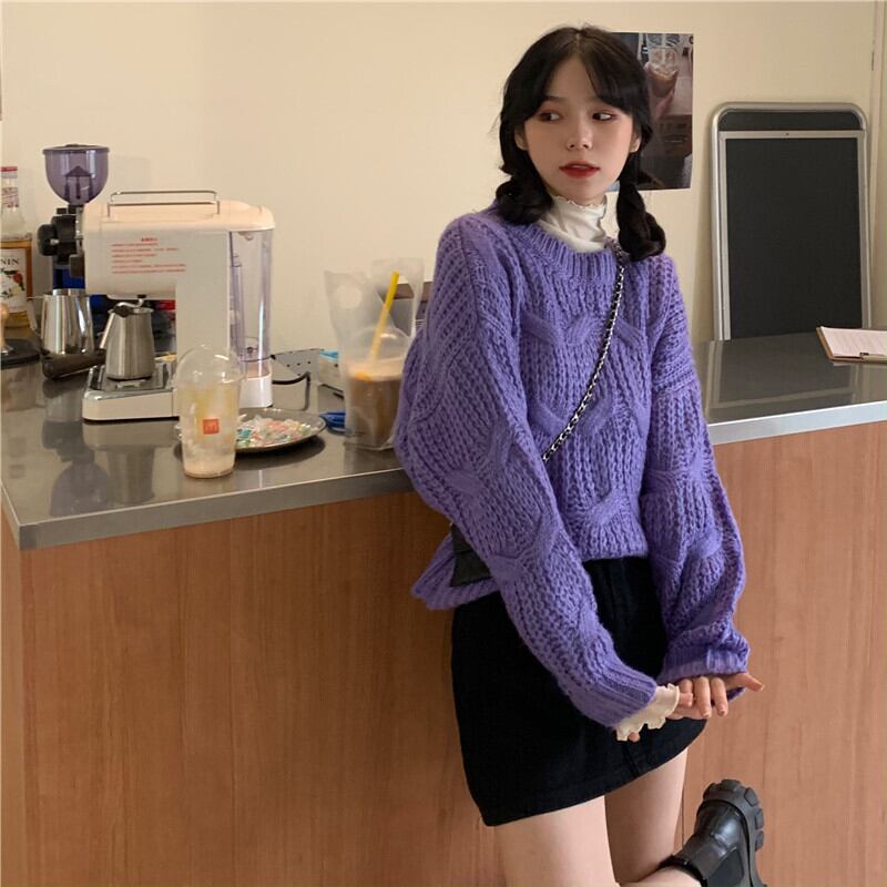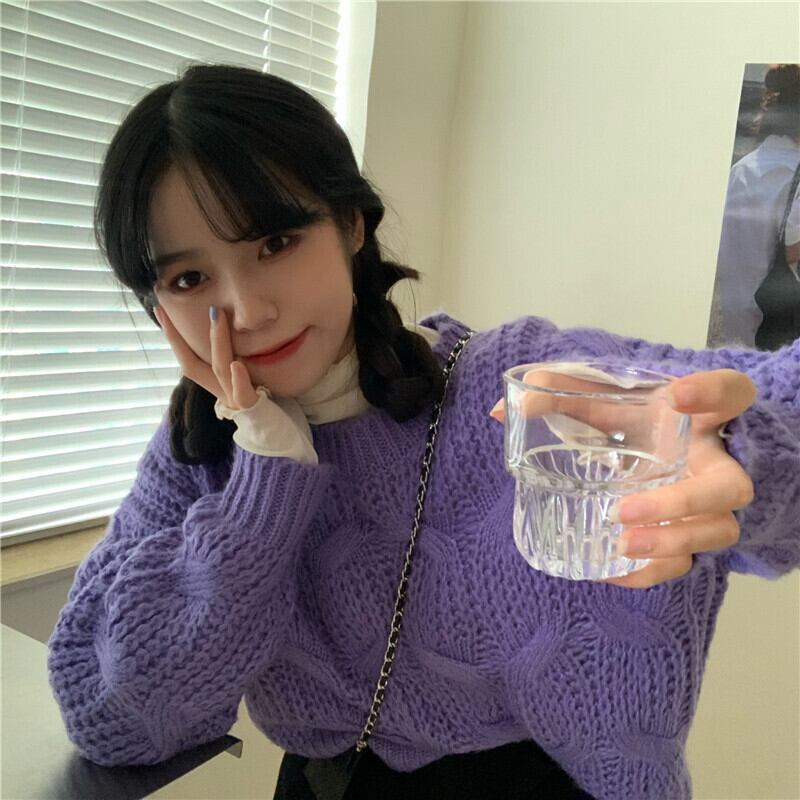 ルーズセーター ウィンタースタイルプルオーバー ロング 冬物 パープル kumikum18722431437