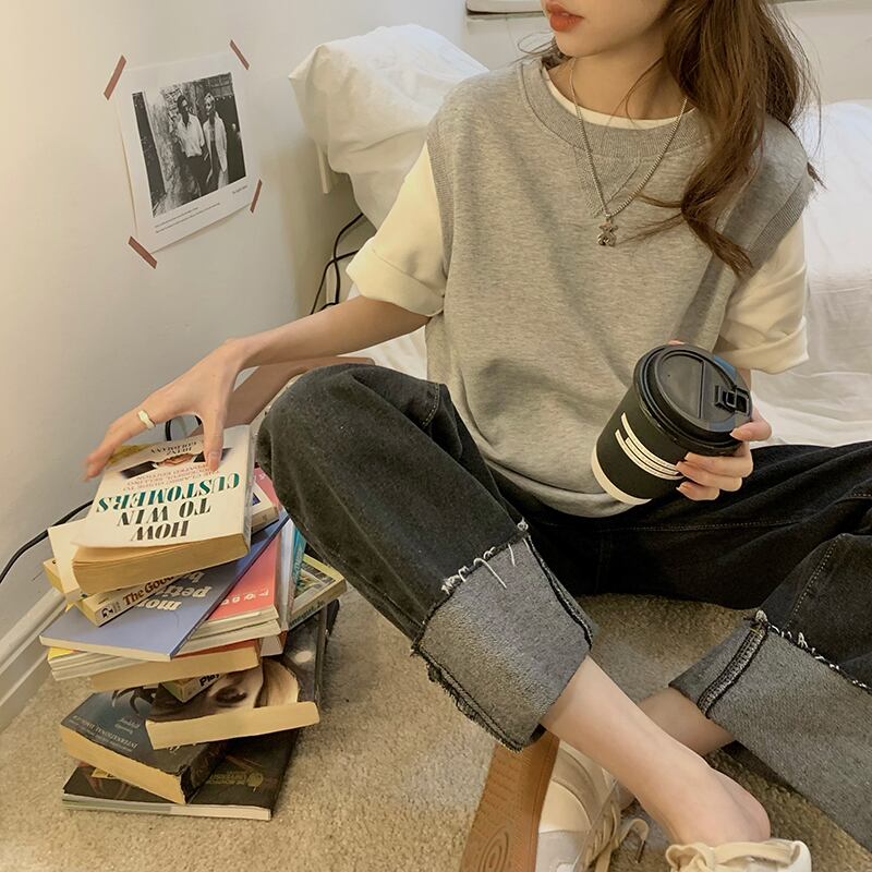 サマールーズラウンドネックジャケット ニットノースリーブ 夏物 Oネック kumikum42773700859