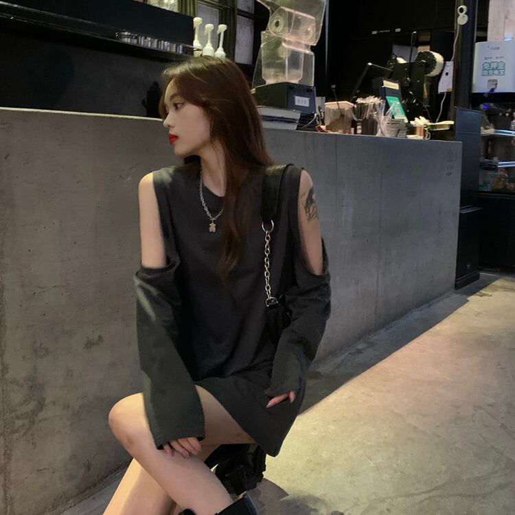 ストラップレスTシャツ スプリングレッドルーズトップス ロング 春物 kumikum65643127102