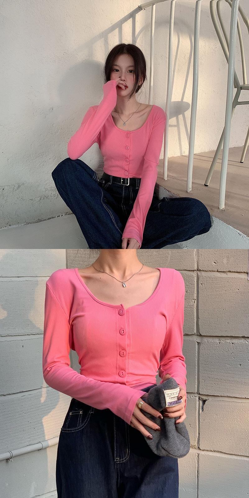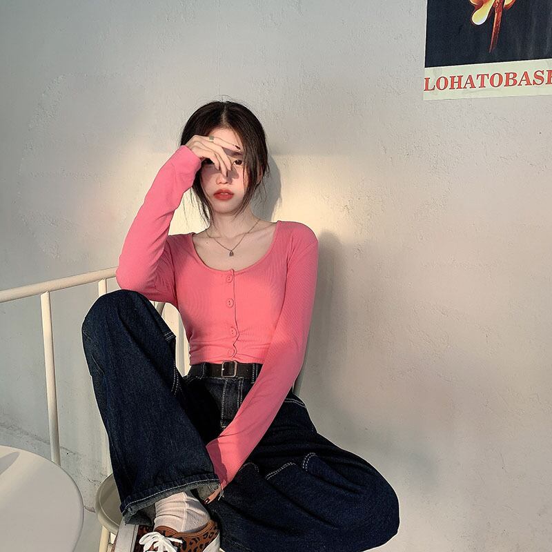 ショートラウンドネックカーディガンシャツ ウィンタースリムTシャツ ロング 冬物 Oネック kumikum98603621301