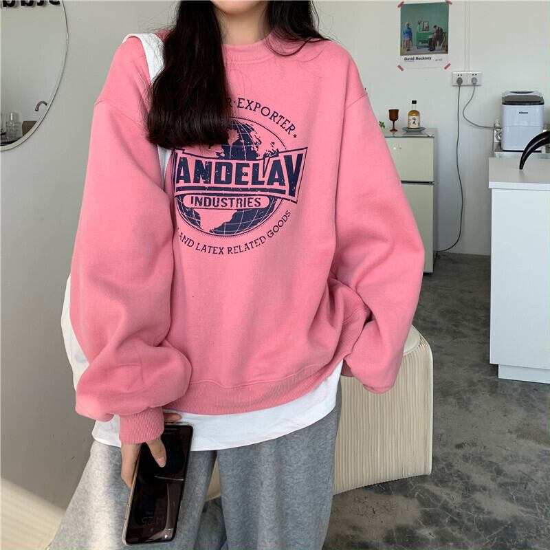 レッドプリントラウンドネックセーター ジャケット レディースオータムウィンタールーズベルベットトップス ロング 秋物 冬物 Oネック ステッチ kumikum15069722570