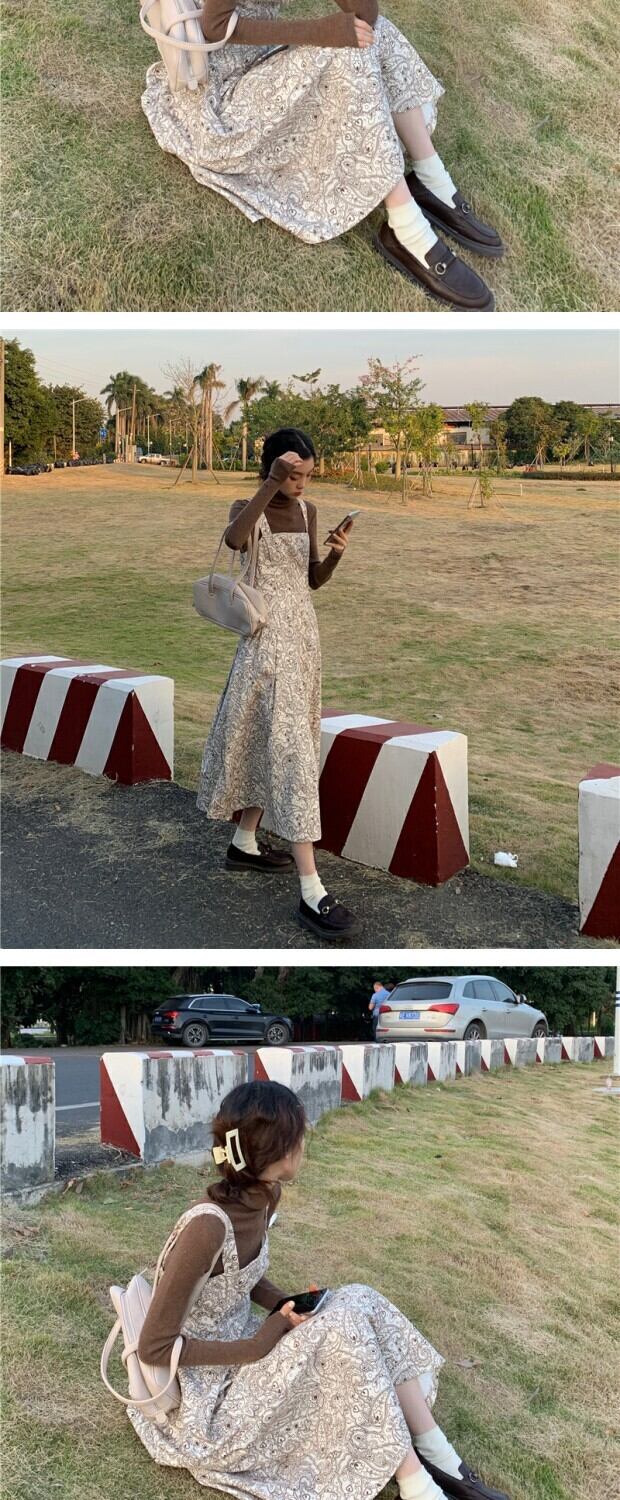 プリント柄ウェストスカート ウィンタースリムドレス 冬物 kumikum92383940487