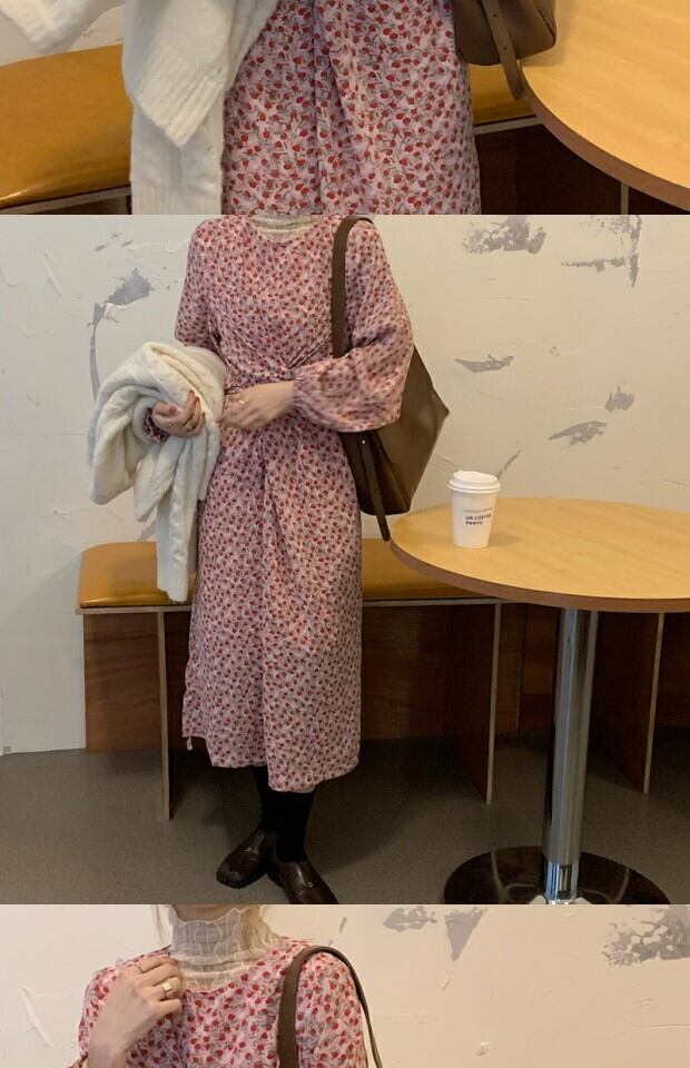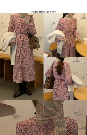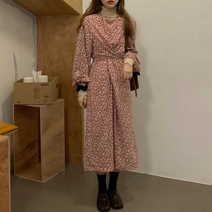 フローラルスカート レディースウィンタースタイルウェストロングスリーブドレス 長袖 冬物 花柄 kumikum43460479818
