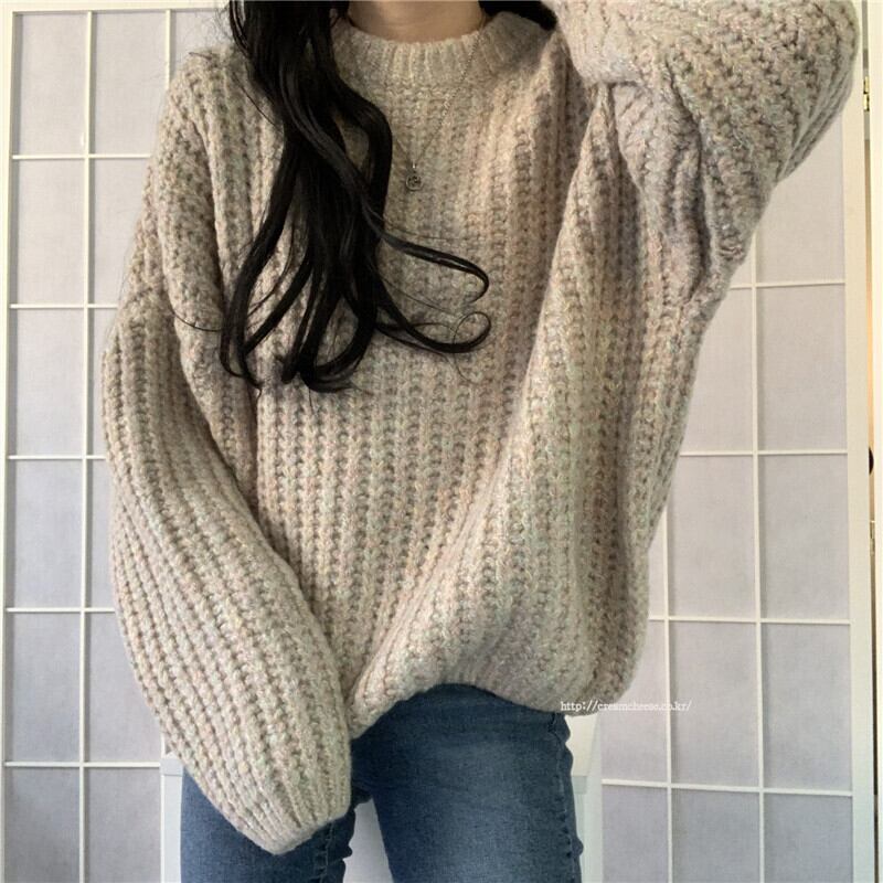 スプリングルーズプルオーバー セーター スタイルラウンドネックトップス ロング 春物 Oネック kumikum63473928164