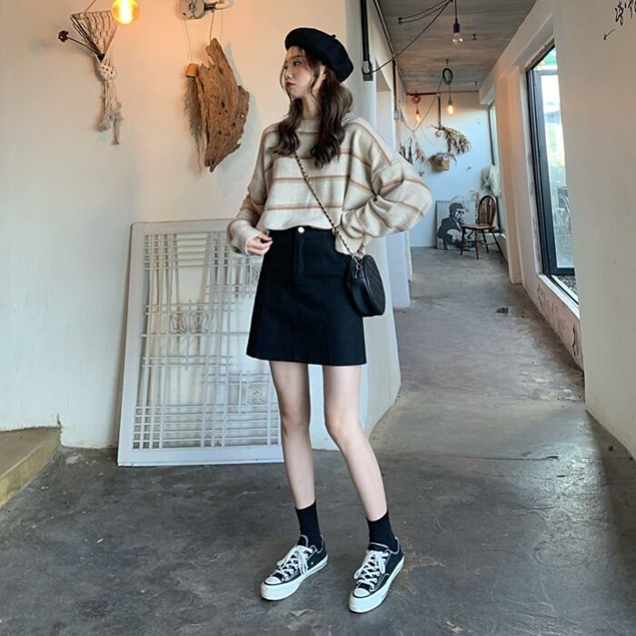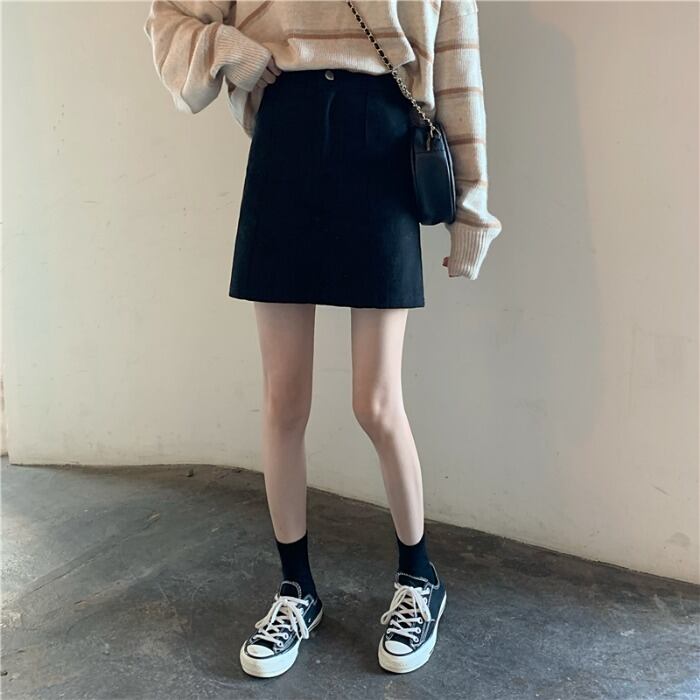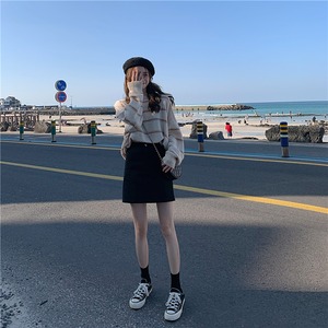 Aラインスカート 薄手ハイウェストウェストオータムスリムスタイルショート 秋物 kumikum42889217437