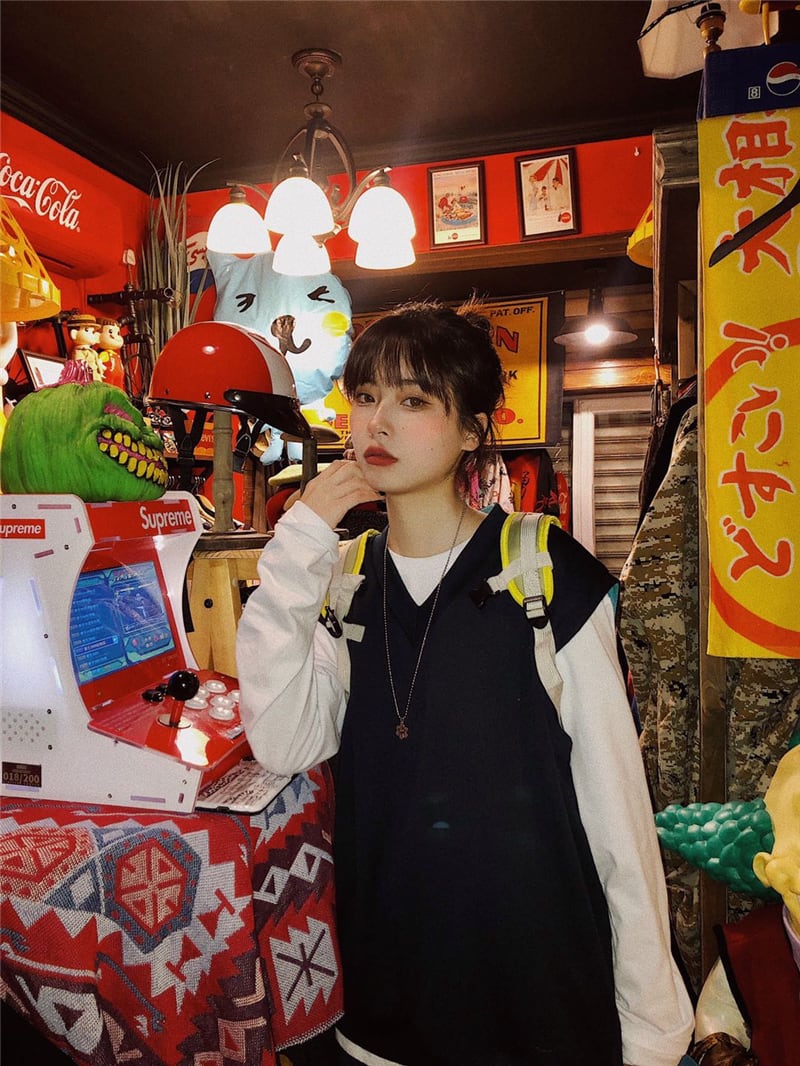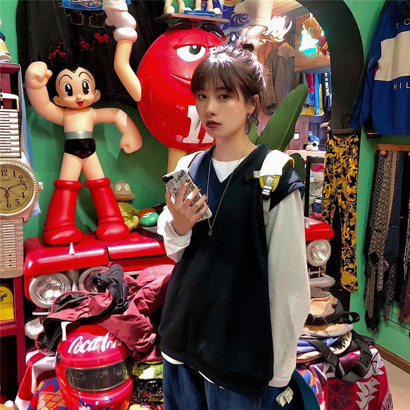 ブラックルーズスタンダードVネックセーター レディーススプリングノースリーブトップス レトロ 春物 kumikum60308338889