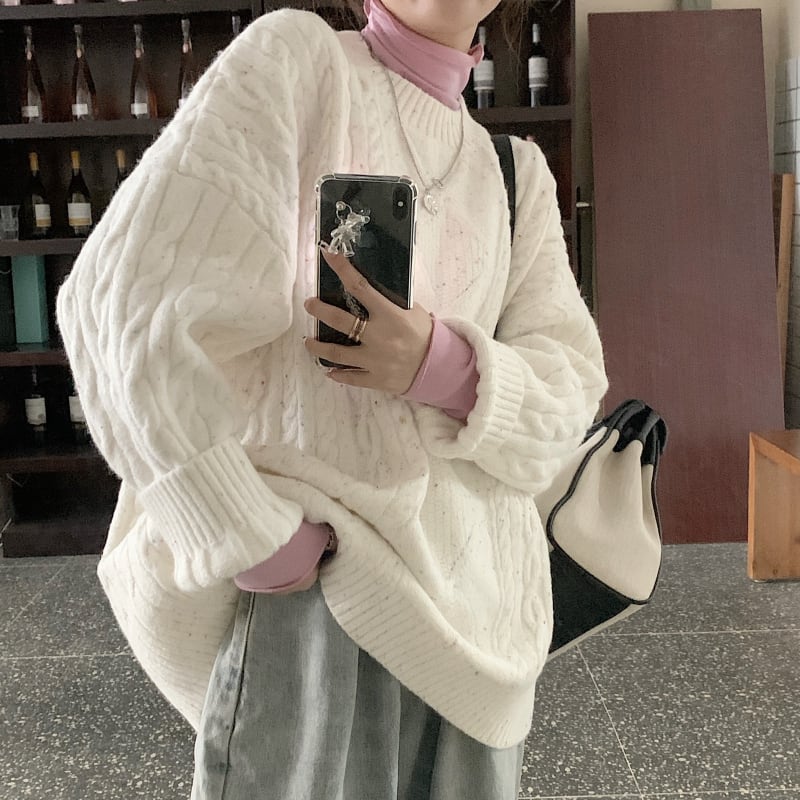 スタイルルーズニットセーター トップス レディーススプリングラウンドネックプルオーバー ロング 春物 Oネック kumikum5383209193