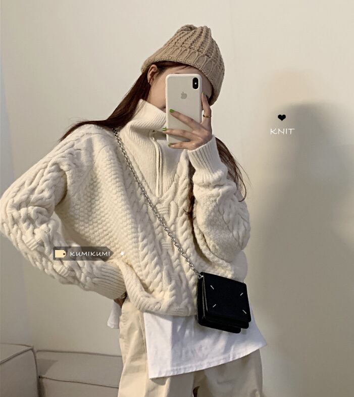 ヴィンテージジッパーセーター レディーススプリングルーズトップス プルオーバー ロング 春物 ビンテージ kumikum40125458216