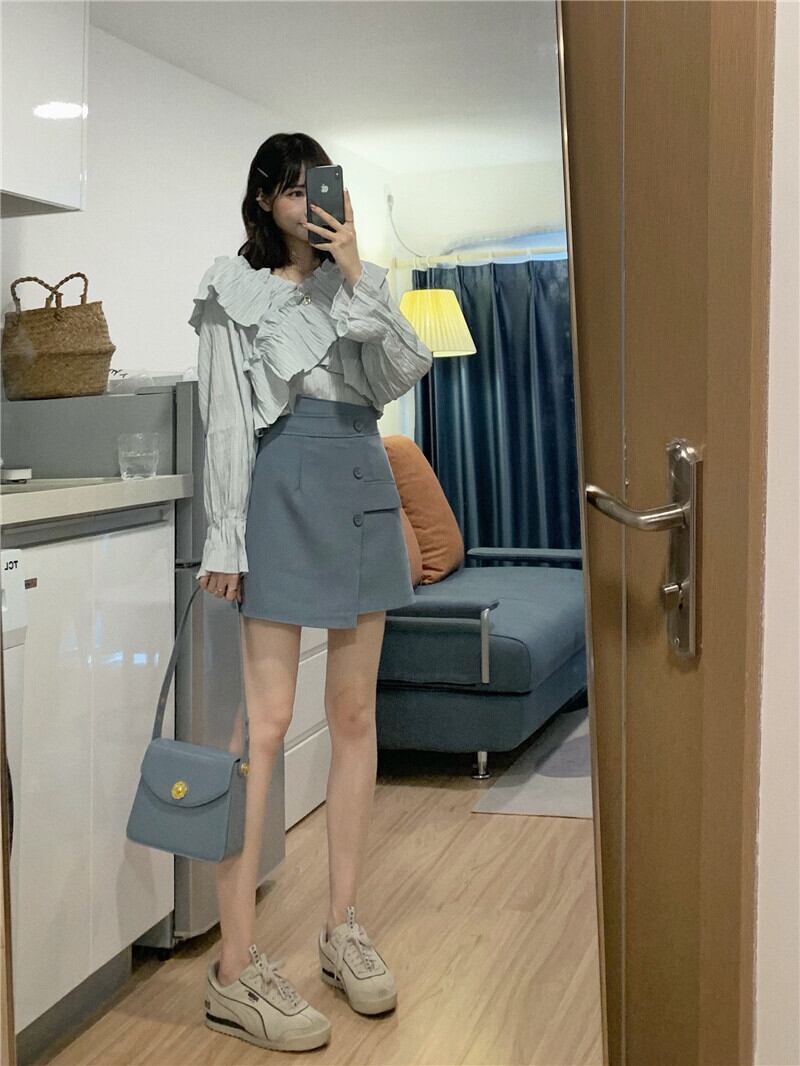 クロスシャツ スプリングハイウェストウェストスカート ロング 春物 kumikum75212123681