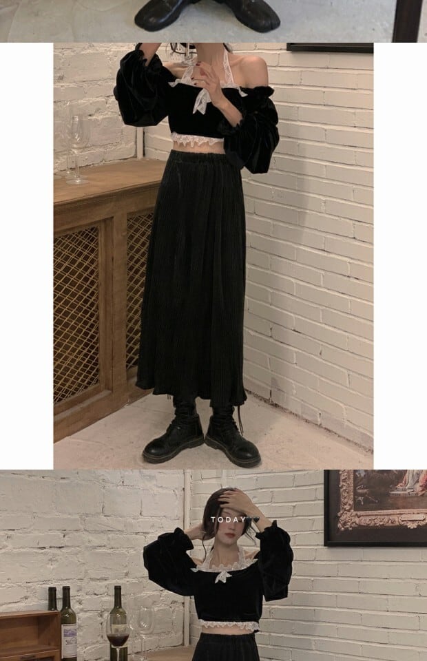 ブラックベルベットスカート ウィンターAラインロング 冬物 kumikum10924397339